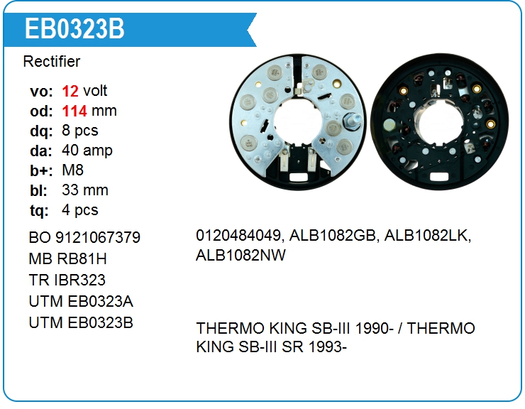 | UTM | EB0323B | Диодный мост генератора | МСК | 1 | да | 5 400,00 руб. | |