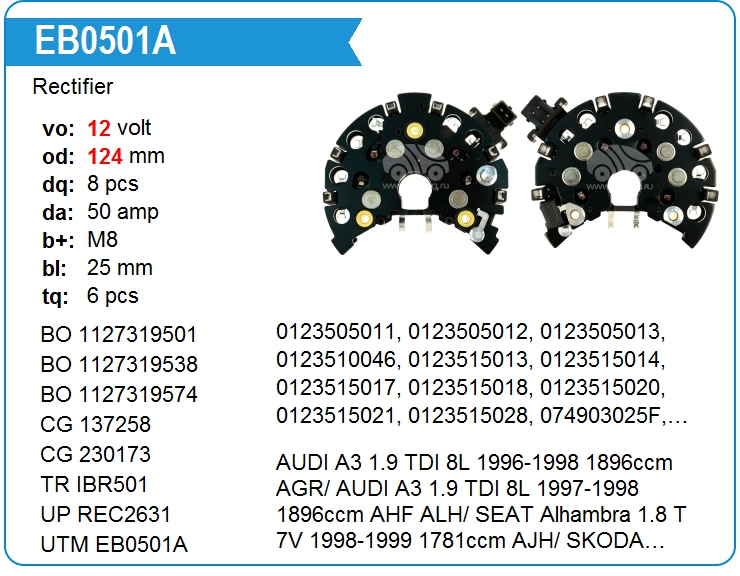 | UTM | EB0501A | Диодный мост генератора | СПБ | 1 | да | 5 000,00 руб. | |