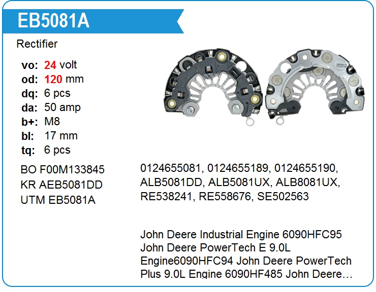 | UTM | EB5081A | Диодный мост генератора | МСК | 1 | да | 4 500,00 руб. | |