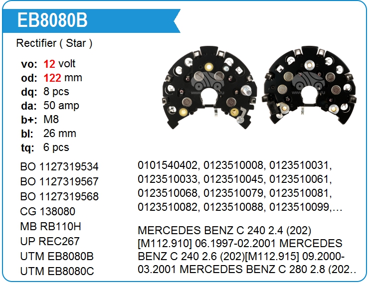 | UTM | EB8080B | Диодный мост генератора Звезда | МСК | 1 | да | 7 200,00 руб. | |