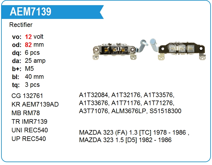 | KRAUF | AEM7139AD | Диодный мост генератора | НСК | 1 | да | 2 700,00 руб. | |