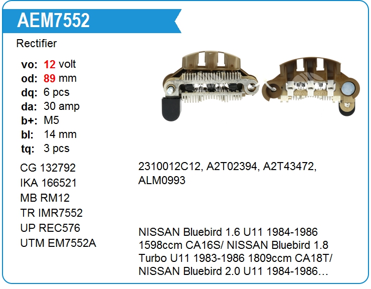 | UTM | EM7552A | Диодный мост генератора | СПБ | 1 | да | 3 600,00 руб. | |