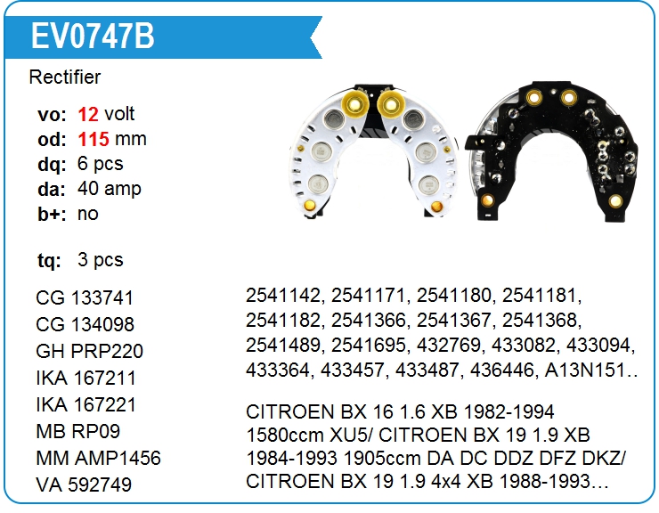 | UTM | EV0747B | Диодный мост генератора | МСК | 1 | да | 4 500,00 руб. |