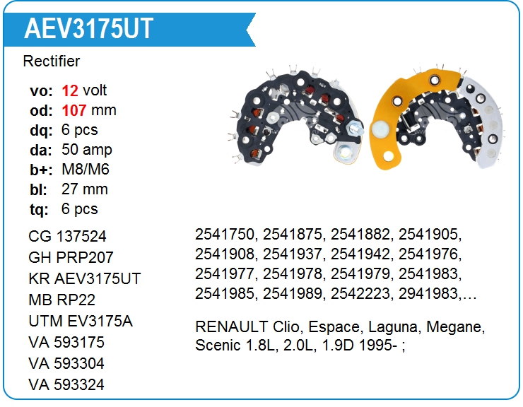 | UTM | EV3175A | Диодный мост генератора | ЕКБ | 1 | да | 5 400,00 руб. | |