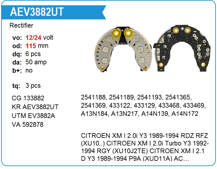 | UTM | EV3882A | Диодный мост генератора | ЕКБ | 1 | да | 4 500,00 руб. | |