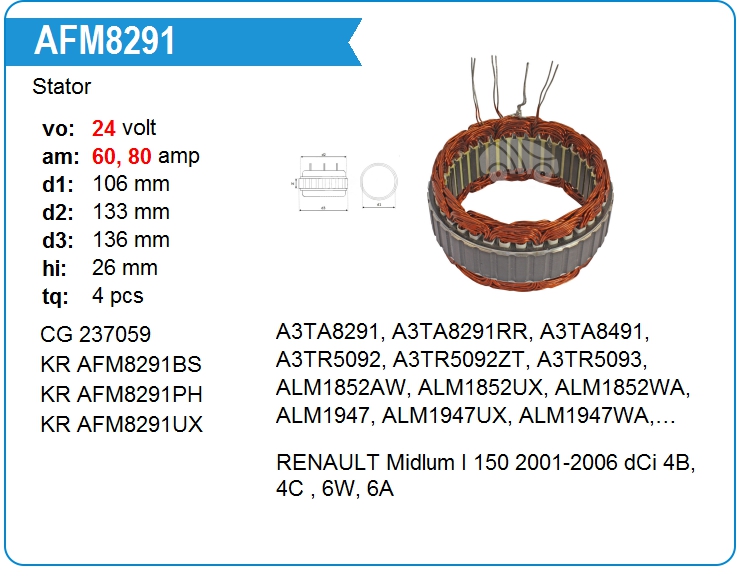 | KRAUF | AFM8291BS | Статор генератора | МСК | 1 | да | 5 500,00 руб. | |