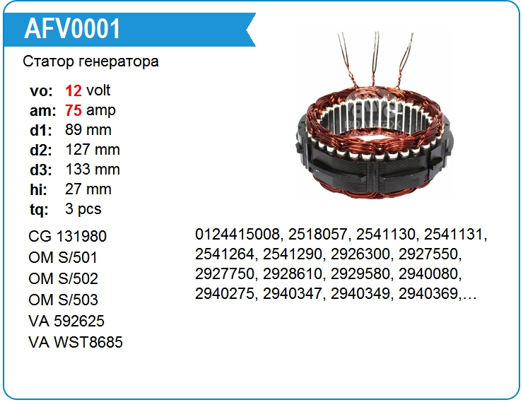 Статор генератора AFV0001