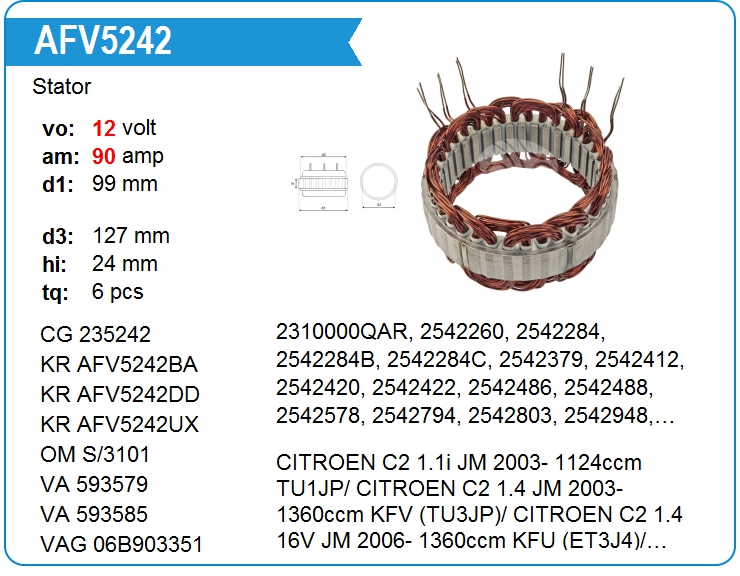 | KRAUF | AFV5242YX | Статор генератора | МСК | 1 | да | 6 000,00 руб. |