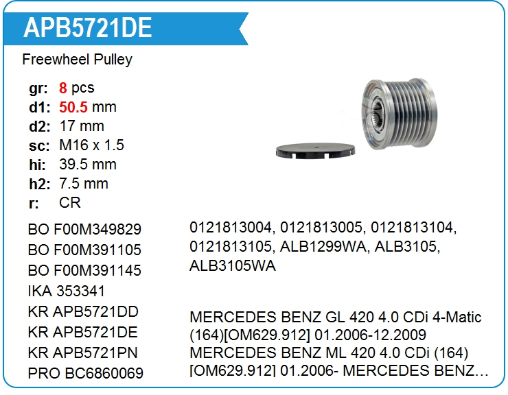 | KRAUF | APB5721DD | Шкив генератора обгонный | МСК | 1 | да | 7 200,00 руб. | |