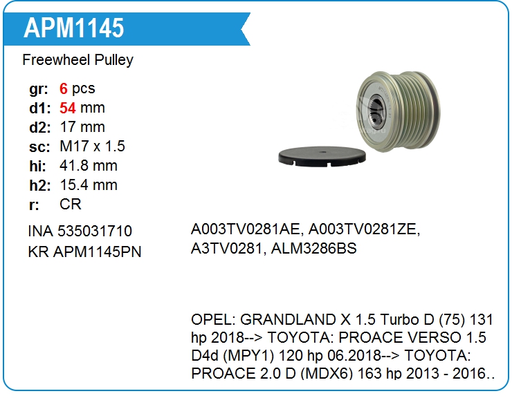 | KRAUF | APM1145PN | Шкив генератора обгонный | ЕКБ | 1 | да | 7 200,00 руб. | |