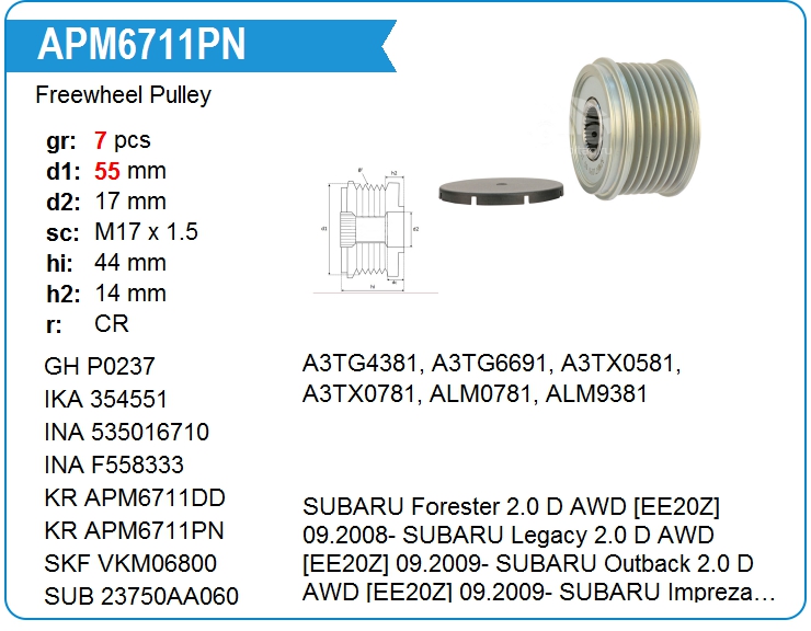 | KRAUF | APM6711PN | Шкив генератора обгонный | ЕКБ | 1 | да | 4 500,00 руб. | |