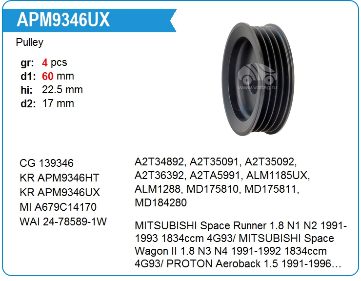 Шкив генератора APM9346