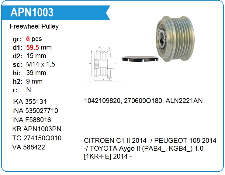 | KRAUF | APN1003PN | Шкив генератора обгонный | ЕКБ | 1 | да | 5 400,00 руб. | |