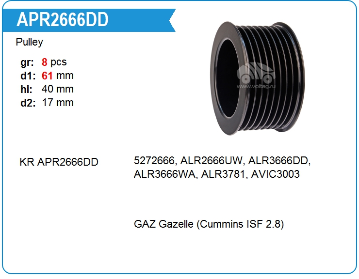 | KRAUF | APR2666DD | Шкив генератора | ЕКБ | 1 | да | 2 000,00 руб. |
