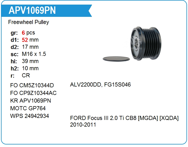| KRAUF | APV1069PN | Шкив генератора обгонный | СПБ | 1 | да | 5 400,00 руб. | |