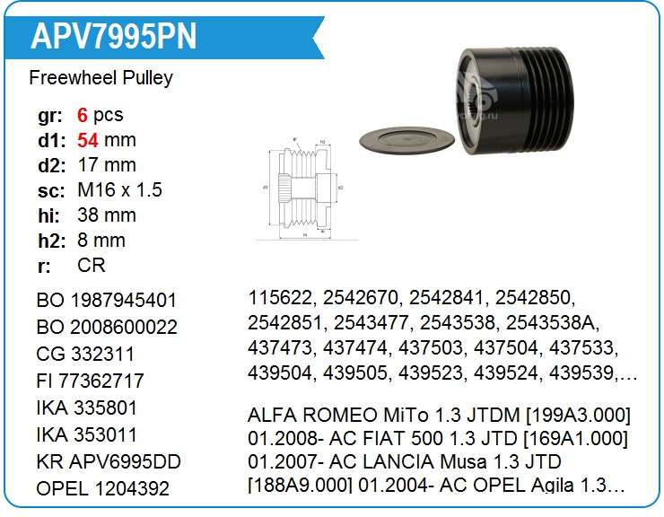 Шкив обгонный генератора APV3083
