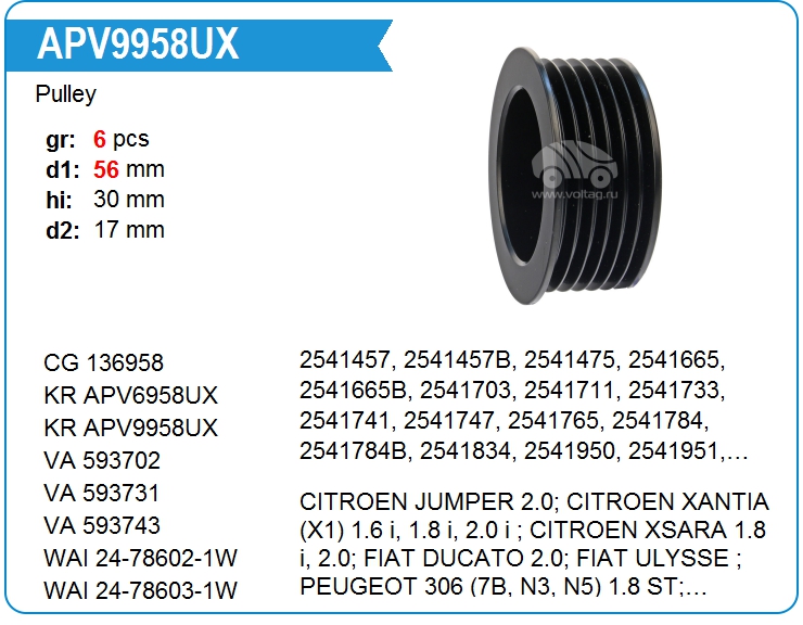 Шкив генератора APV6958