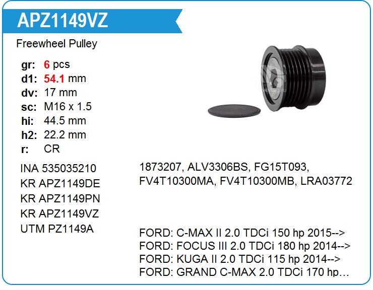 | KRAUF | APZ1149PN | Шкив генератора обгонный | ЕКБ | 1 | да | 5 400,00 руб. | |