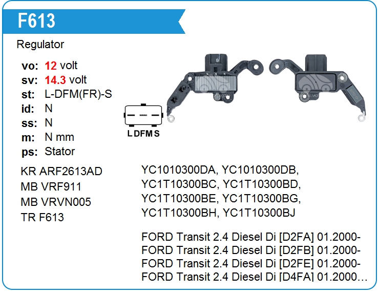Transpo | F613 | Регулятор генератора | СПБ | 1 | да | 5 400,00 руб. | |