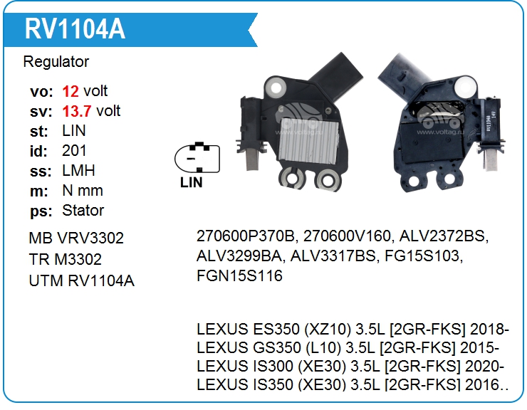 | UTM | RV1104A | Регулятор генератора | ЕКБ | 1 | да | 11 700,00 руб. | |