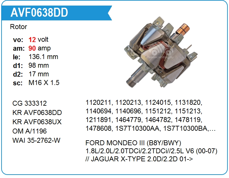 | KRAUF | AVF0638UX | Ротор генератора | ЕКБ | 1 | да | 11 700,00 руб. |