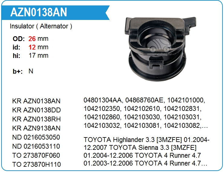 | KRAUF | AZN0138RH | Изолятор генератора | МСК | 1 | да | 900,00 руб. | |