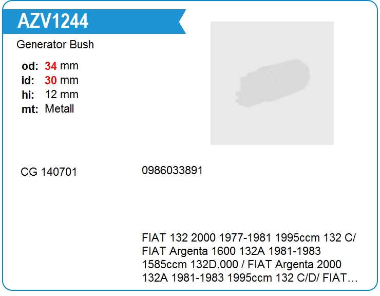 Втулка генератора AZV1244