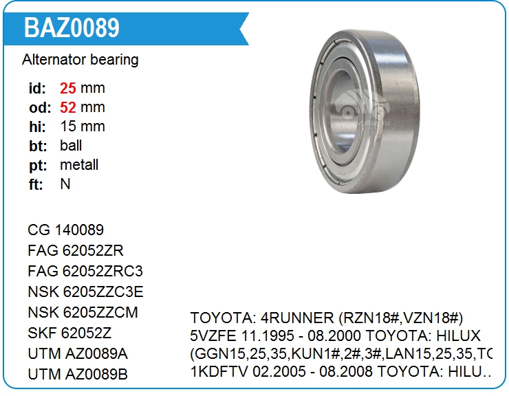 Подшипник генератора BAZ0089