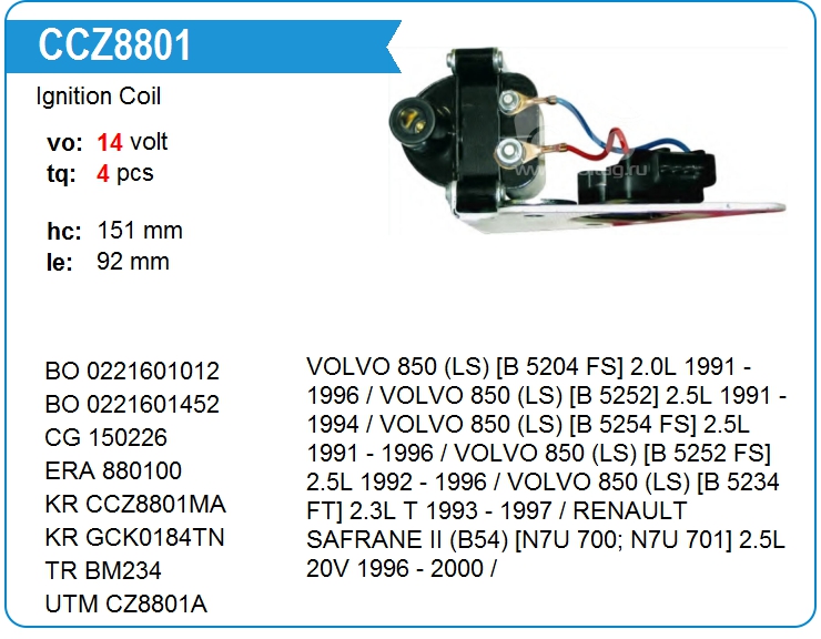 Катушка зажигания с коммутатором UTM CZ8801A (CZ8801A)