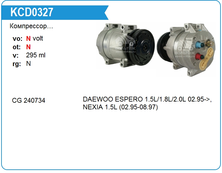 Компрессор кондиционера автомобиля KCD0327