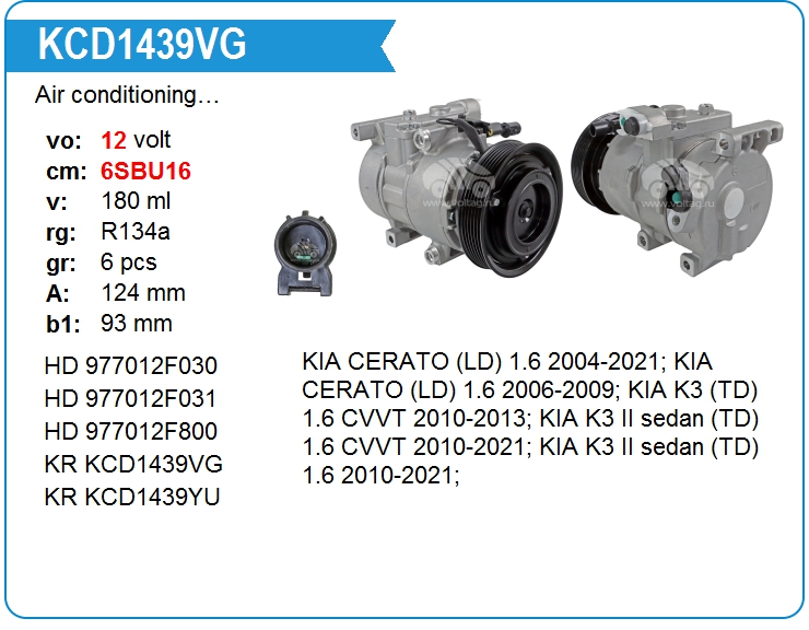 Компрессор кондиционера автомобиля KCD1439