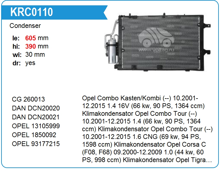 Радиатор кондиционера KRC0110