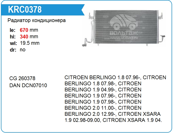 Радиатор кондиционера KRC0378