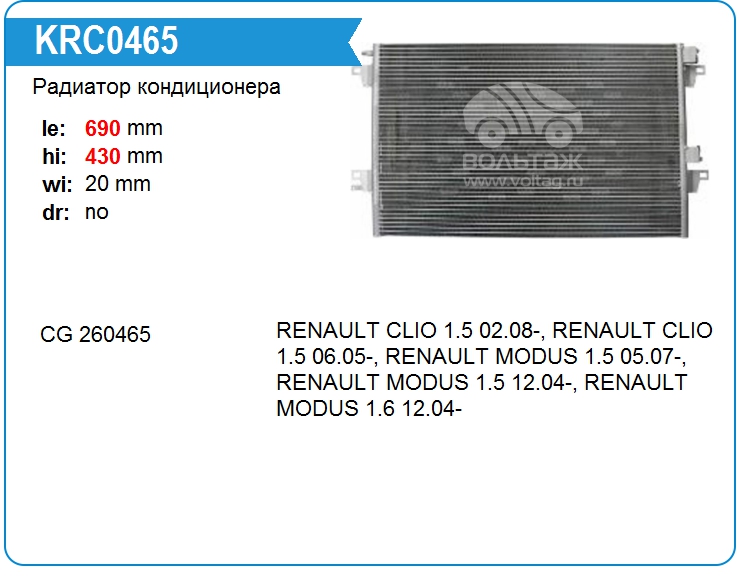 Радиатор кондиционера KRC0465
