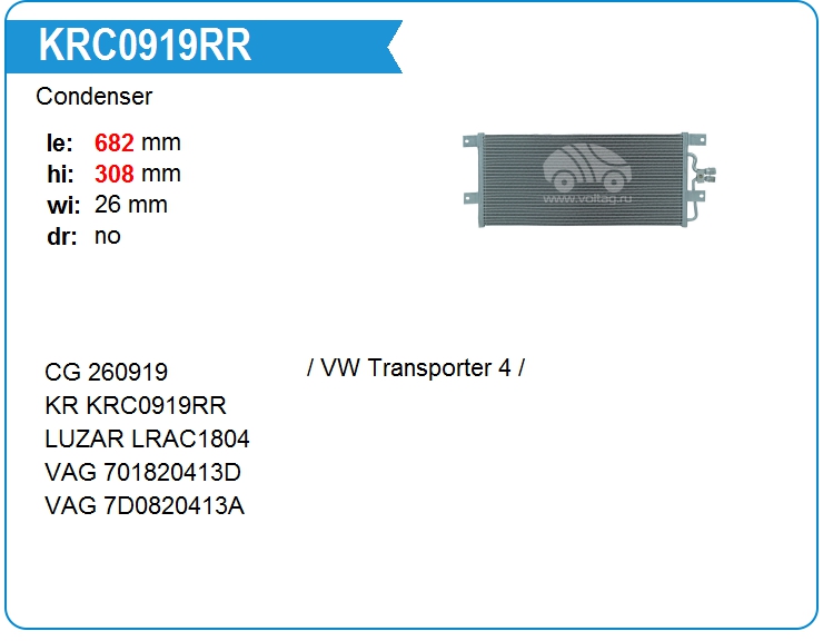 Радиатор кондиционера KRC0919