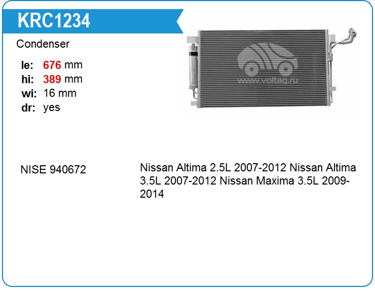 Радиатор кондиционера KRC1234
