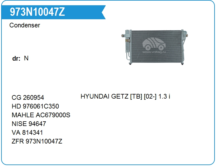 | ZAUFER | 973N10047Z | Радиатор кондиционера | нет | * звоните |