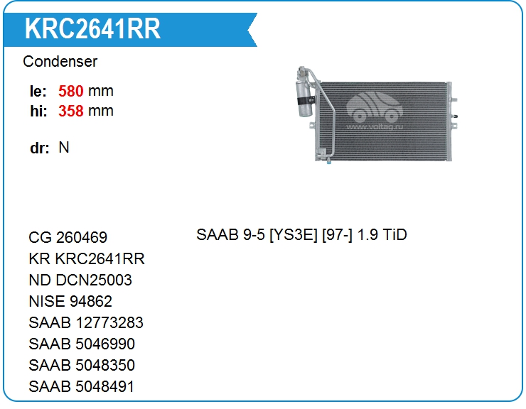 Радиатор кондиционера KRC2641