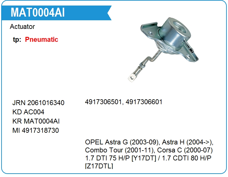 Актуатор турбокомпрессора MAT0004