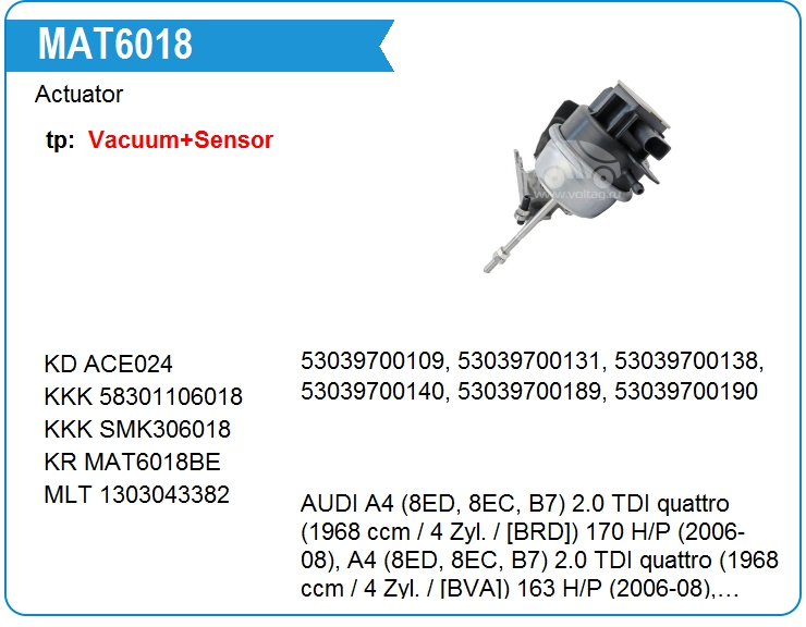 | KRAUF | MAT6018TT | Актуатор турбокомпрессора | МСК | 1 | да | 17 100,00 руб. |