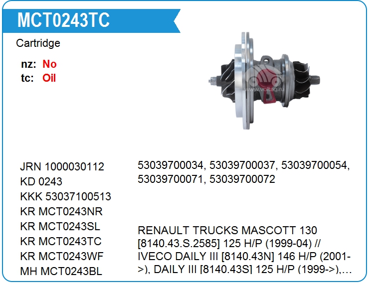 | KRAUF | MCT0243NR | Картридж для турбокомпрессора | МСК | 1 | да | 8 000,00 руб. | |