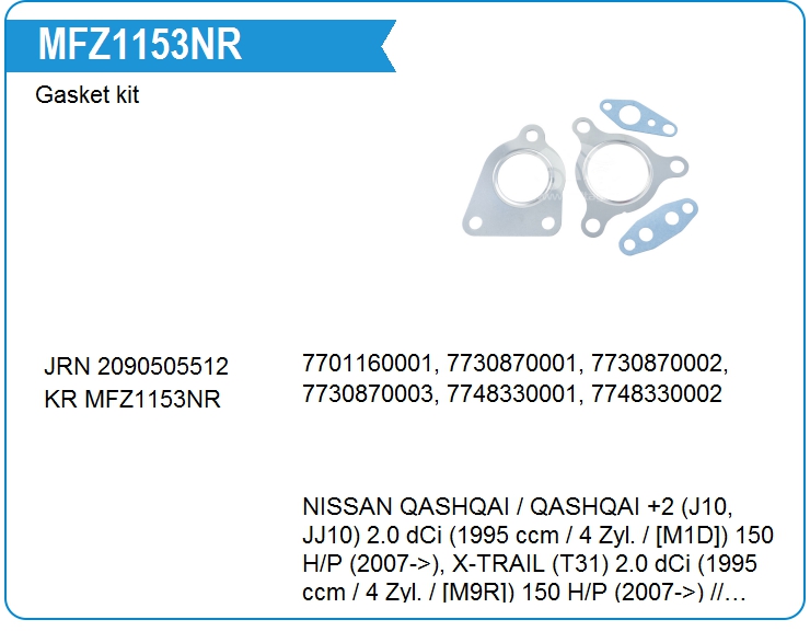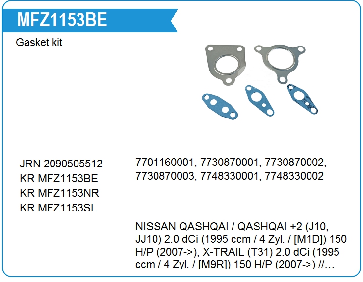 Комплект прокладок турбокомпрессора MFZ1153