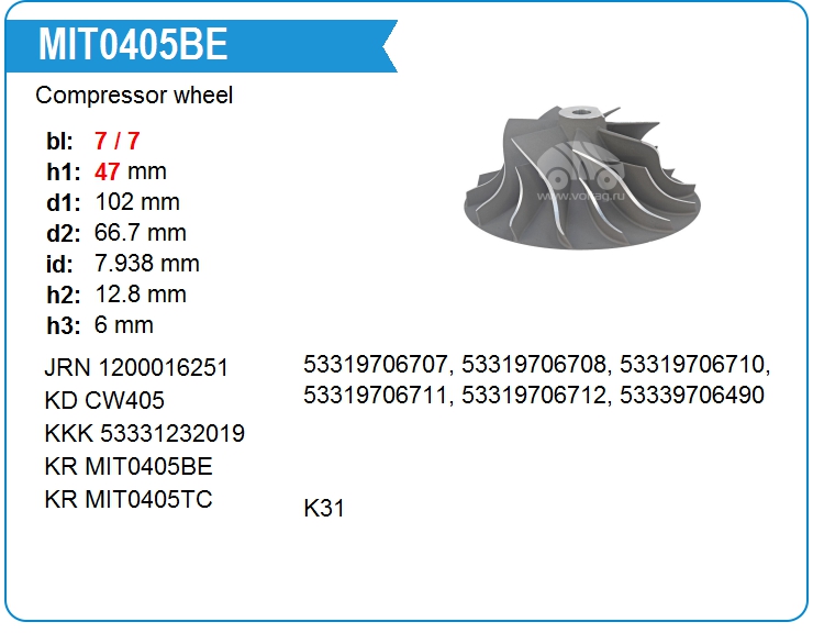Крыльчатка турбокомпрессора MIT0405