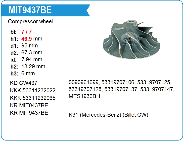 Крыльчатка турбокомпрессора MIT0437
