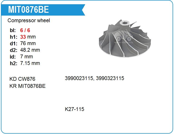 Крыльчатка турбокомпрессора MIT0876