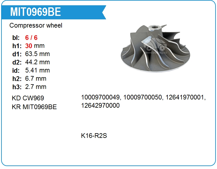 Крыльчатка турбокомпрессора MIT0969