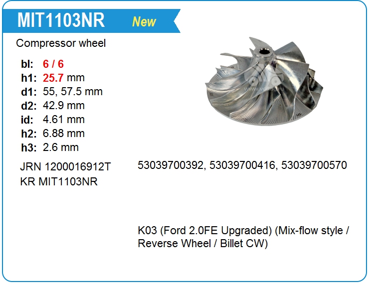 Крыльчатка турбокомпрессора MIT1103