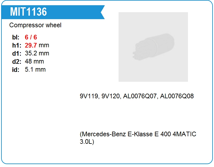 Крыльчатка турбокомпрессора MIT1136