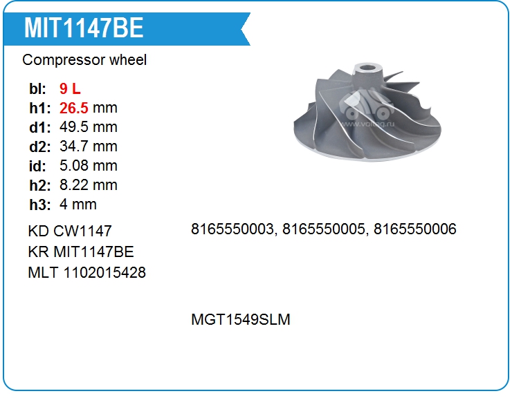 Крыльчатка турбокомпрессора MIT1147
