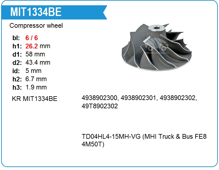 Крыльчатка турбокомпрессора MIT1334